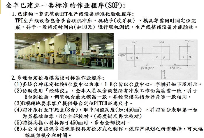 金豐質量獲得TFT產業客戶的一致肯定。